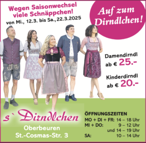 Ihr Trachtenshop im Herzen Oberbeurens. Hier werden sie von Kopf bis Fuß passend zu ihrem Typ ausgestattet. Wir haben Trachten für jeden Geschmack.